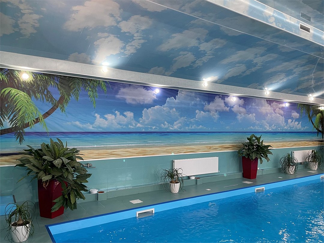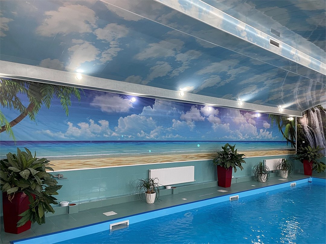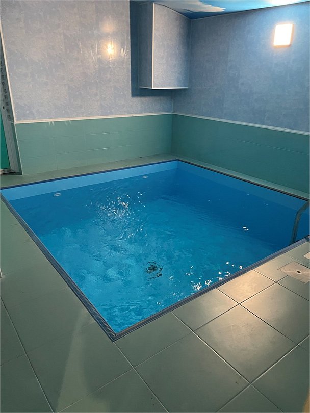 бассейн в шале с сауной, зоной барбекю и кухней