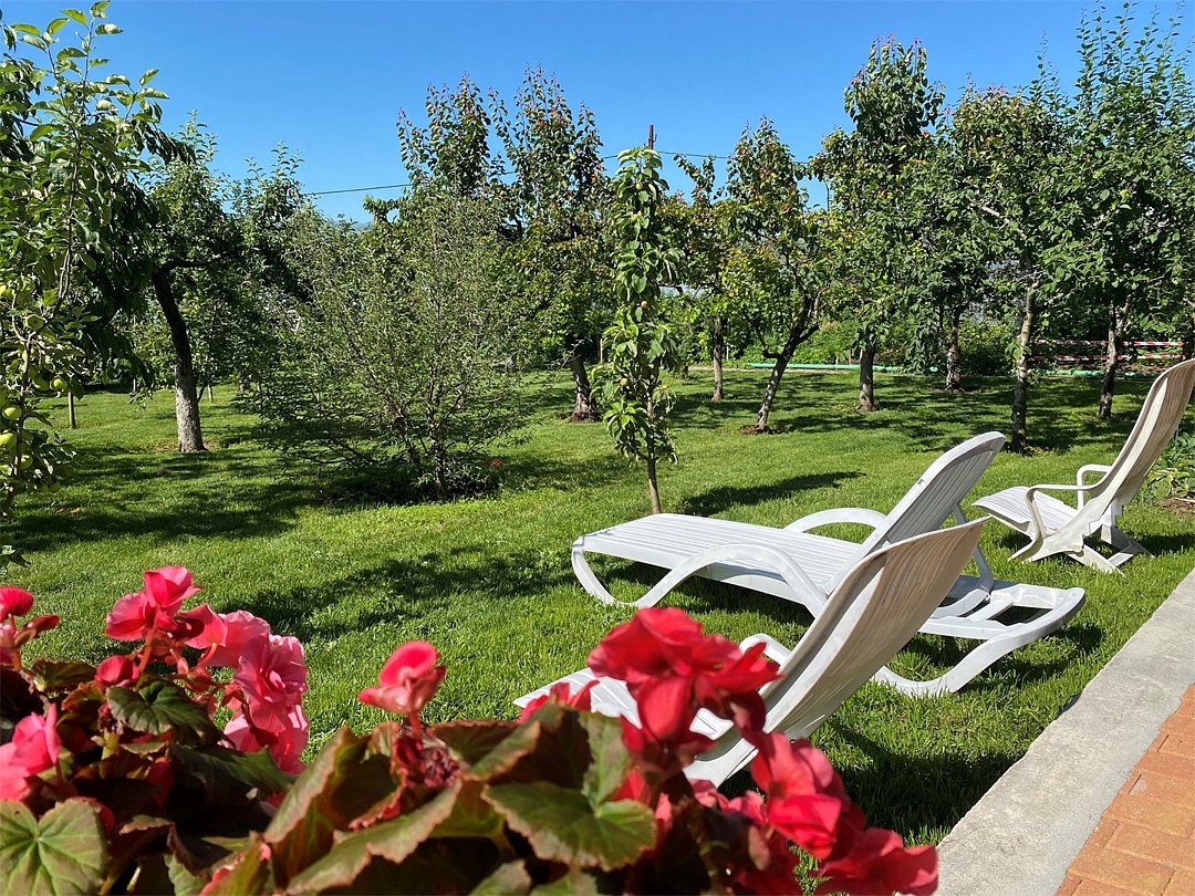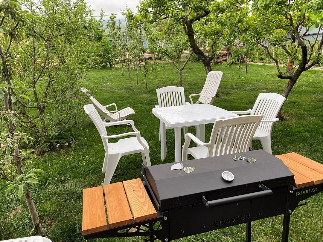 Домик с видом на горы и сад. Со своей зоной барбекю и полноценной кухней. Сауна в домике за дополнительную оплату. Питомцы за доп.оплату.Услуги и удобства