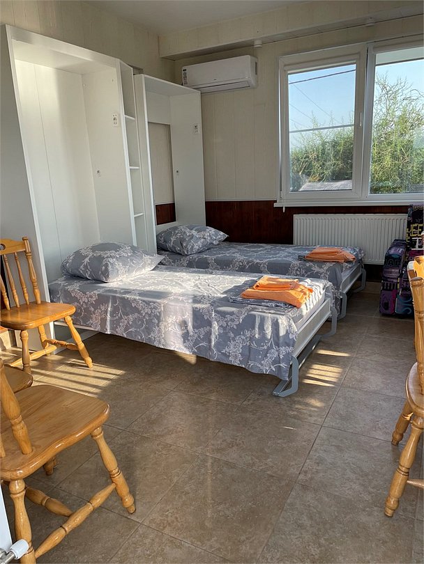отдельный дом с двухкомнатными апартаментами, С видом на Эльбрус, Паровоз-гору, собственным выход в общий бассейн, со своей терассой, зоной патио с мангалом и зоной отдыха четыре кровати, двуспальный диван-кровать и несколько -диван кроватей.Услуги и удобства