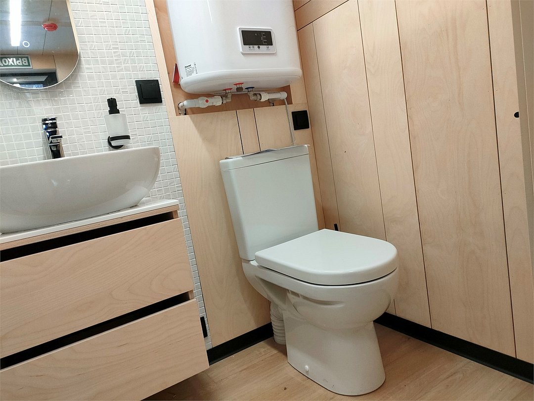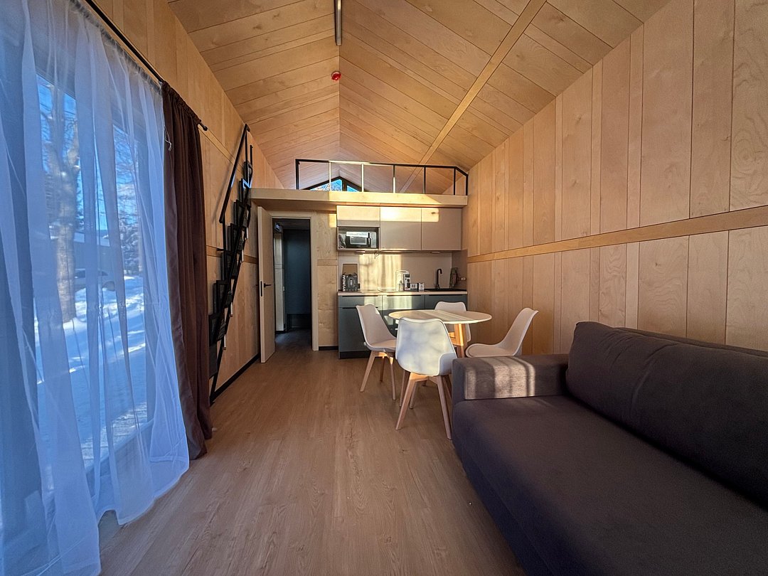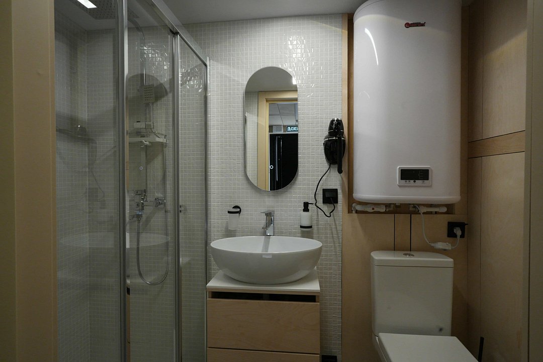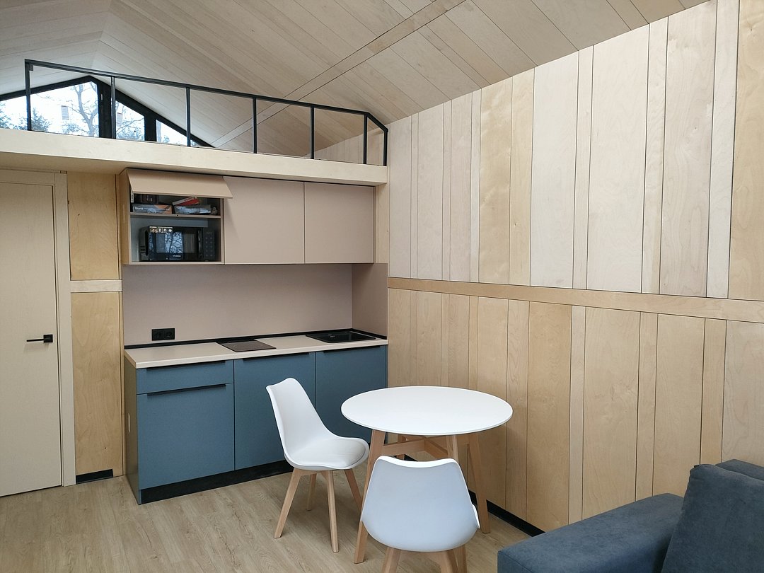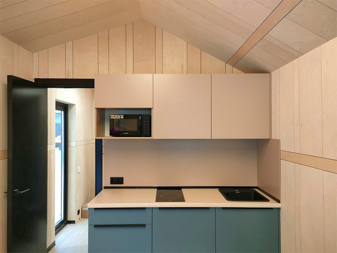 Дом рассчитан на два человека, с возможностью размещения до двух дополнительных гостей.