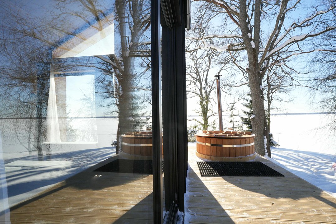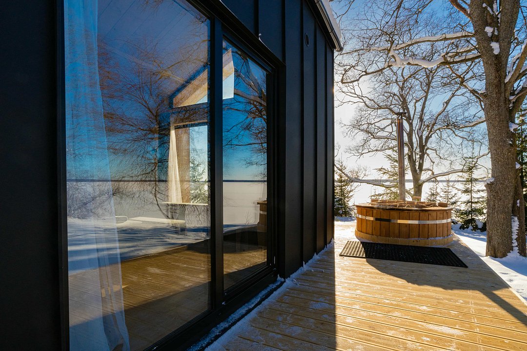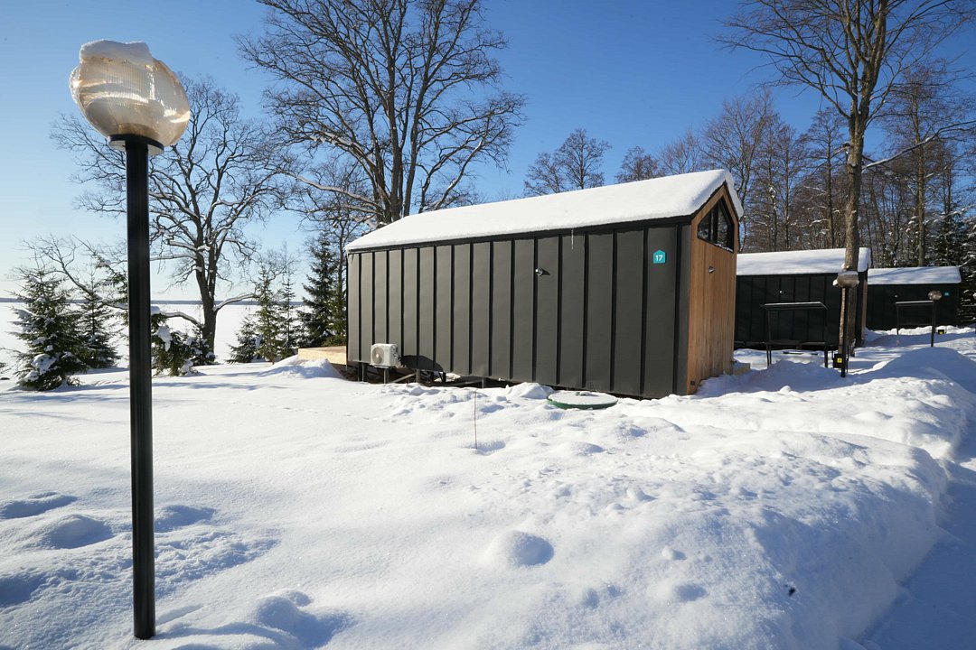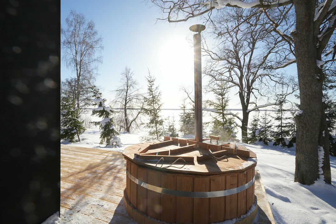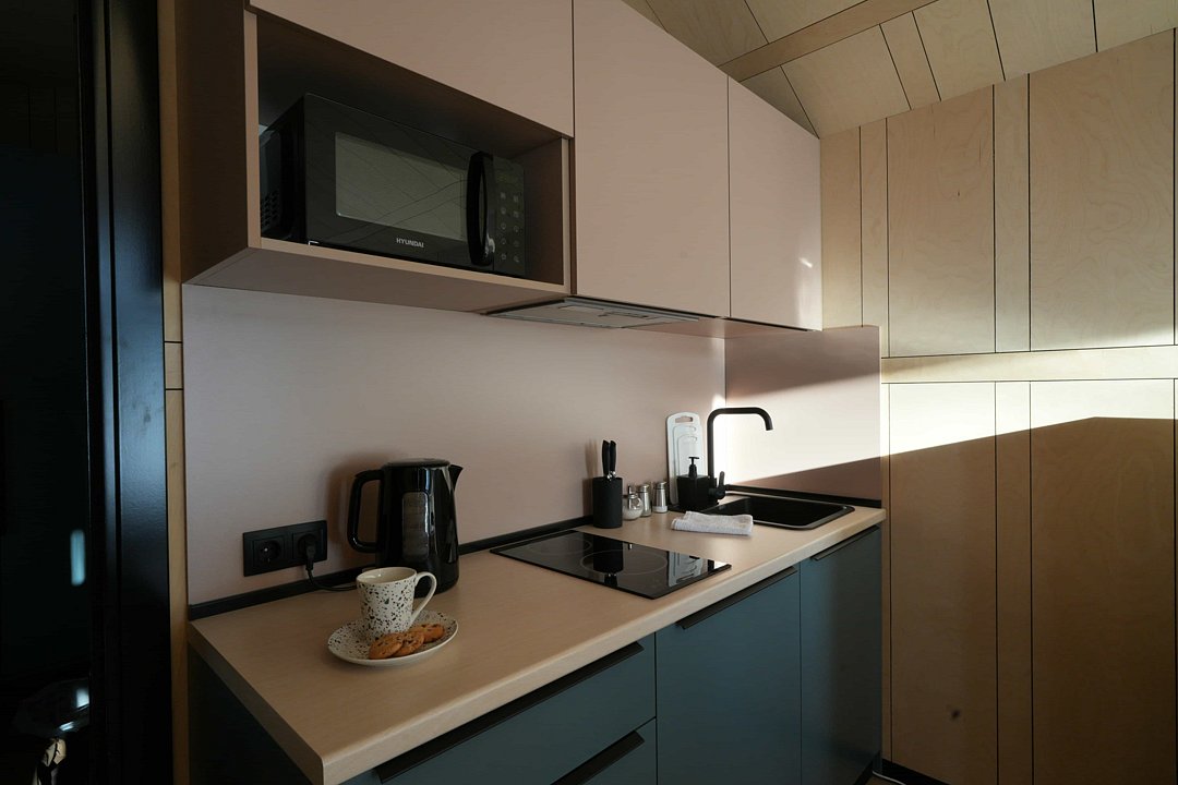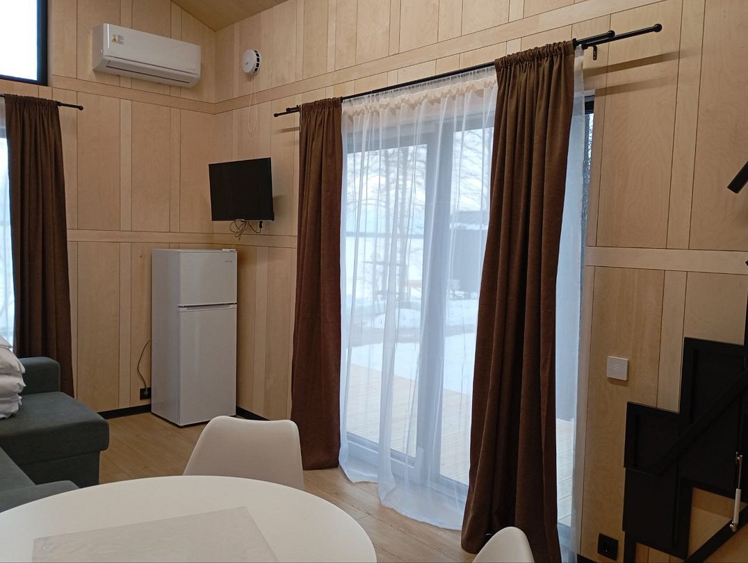 Для комфортного проживания для вас подготовлены стильные и уютные барнхаусы с панорамными окнами. В каждом из них есть оснащенная кухня, ванная комната и собственная купель на террасе. Также имеется телевидение и Wi-Fi.