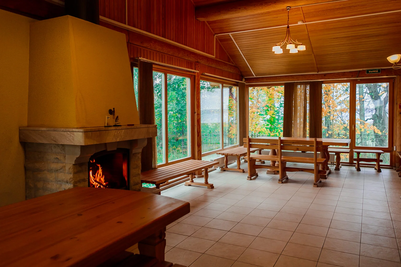 - Зона отдыха с камином