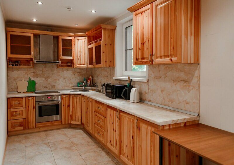 На территории каждого коттеджа размещена современная кухня, в которой есть всё необходимое для приготовления вкусной и полезной еды.
