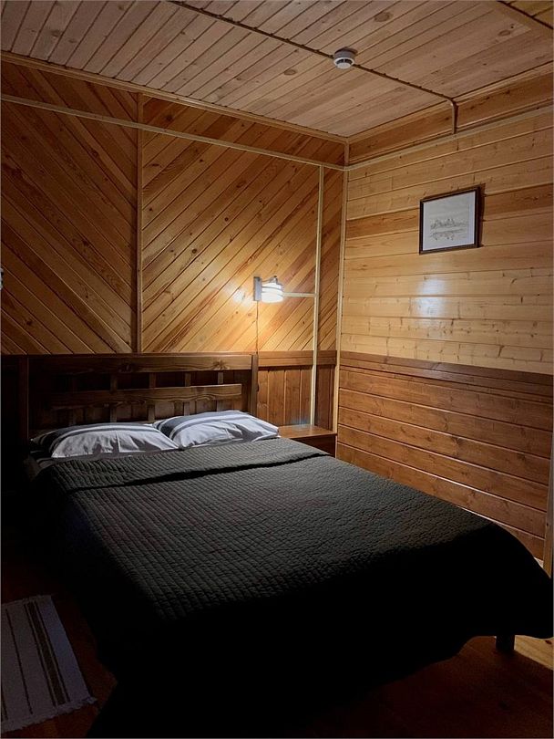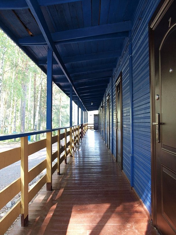 Номера на две персоны, в номерах кровати по количеству человек (возможно дополнительное размещение человека — раскладушка), тумбочки, вешалки, столы, стулья, комод, балкон с видом на озеро в каждом номере, освещение, обогреватели (по необходимости), розетки.