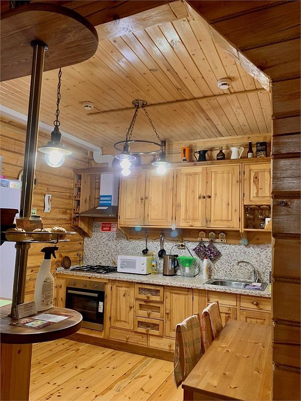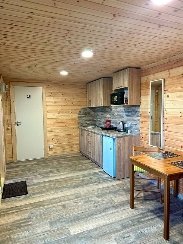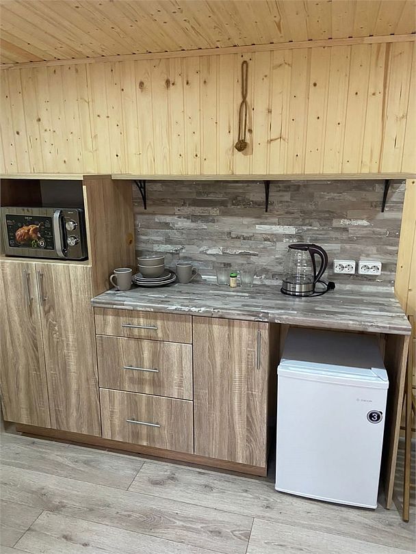 В корпусе размещается отдельная оборудованная кухня с газовыми плитами, электрическим чайником (дополнительная услуга), водопроводом, умывальником, посудой и необходимыми принадлежностями.