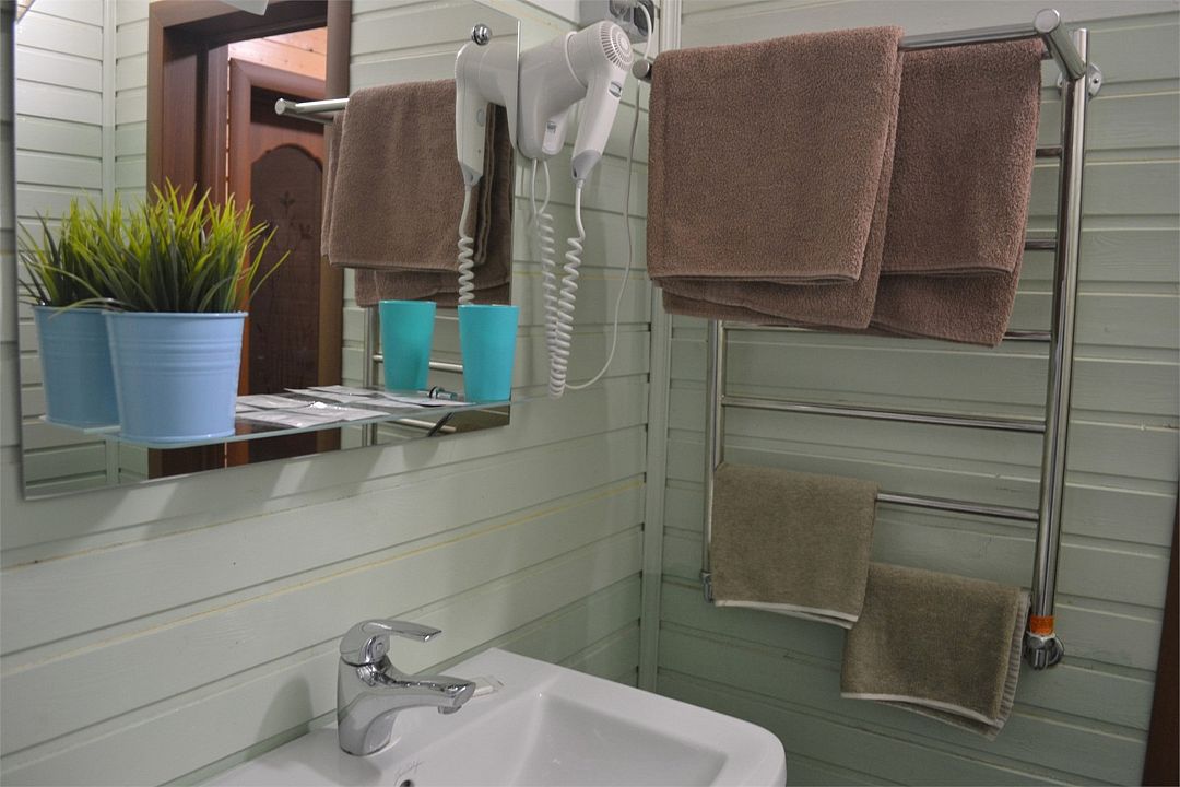 В каждом номере находятся все необходимые удобства для комфортного проживания и отдыха: все номера оборудованы туалетными комнатами с душевой кабиной, туалетом, раковиной, феном и полотенцесушителем.