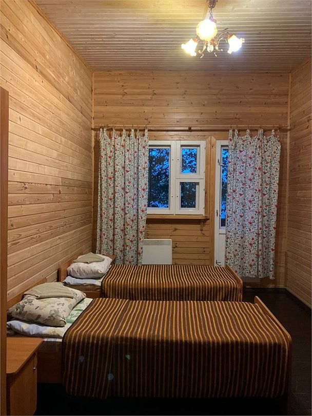 Номера на три персоны, в номерах кровати на трех человек (дополнительно возможно размещение четвертого человека — раскладушка), тумбочки, вешалки, столы, стулья, комод, балкон с видом на озеро в каждом номере, освещение, обогреватели (по необходимости), розетки.