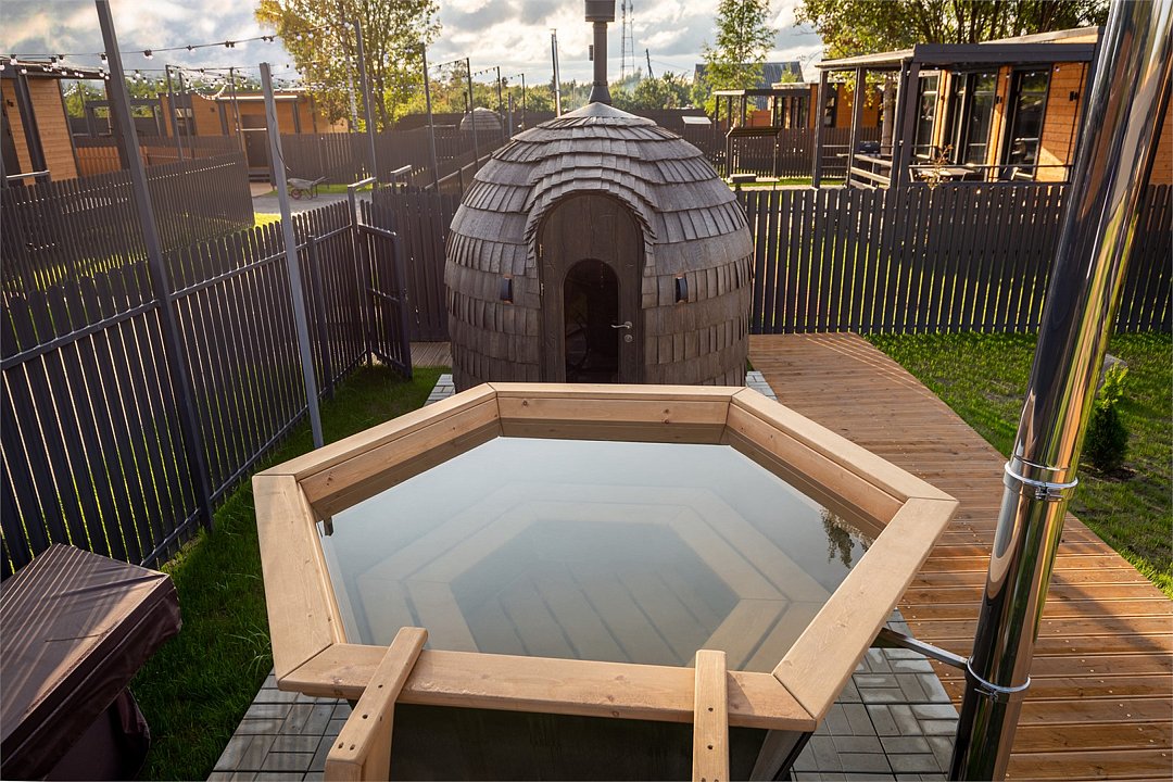 Читать полностьюСвой банный чан есть у каждого домика, некоторые домики оборудованы и баней, и банным чаном.