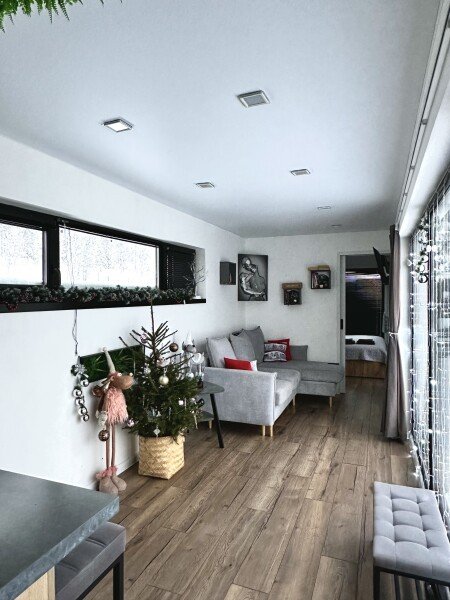Все комнаты оснащены полами с подогревом. Площадь домика 45 м².