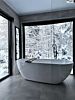 Органичный дизайн с отдельно стоящий белоснежной ванной с совмещенным санузлом в стиле минимализм и тропическим душем не оставит равнодушным даже эстета.