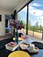 - кухня гостиная: посуда на 4 персоны, плита, холодильник, микроволновая печь, чайник, телевизор, кондиционер-обогреватель;