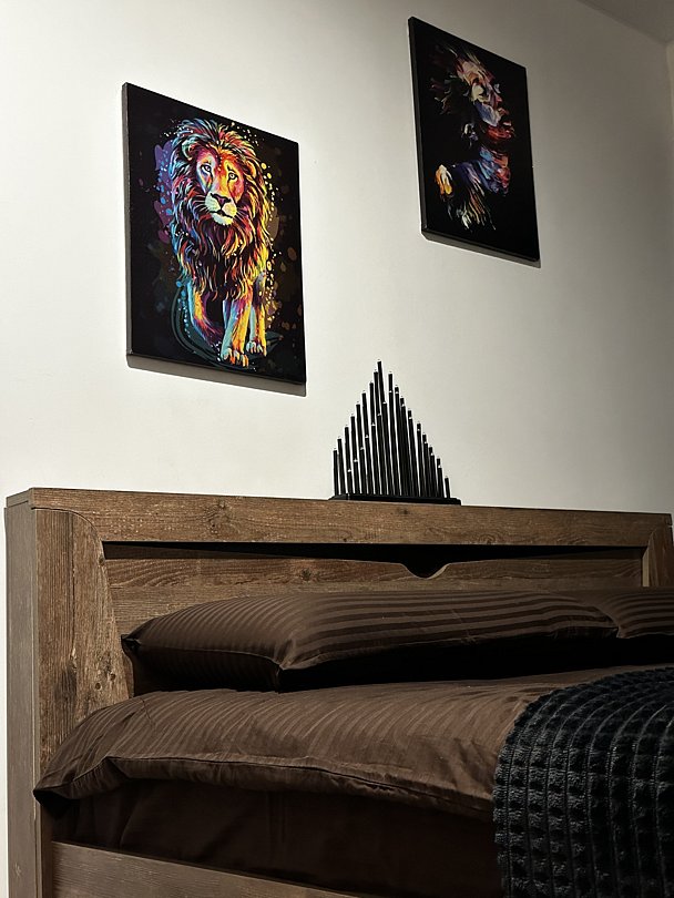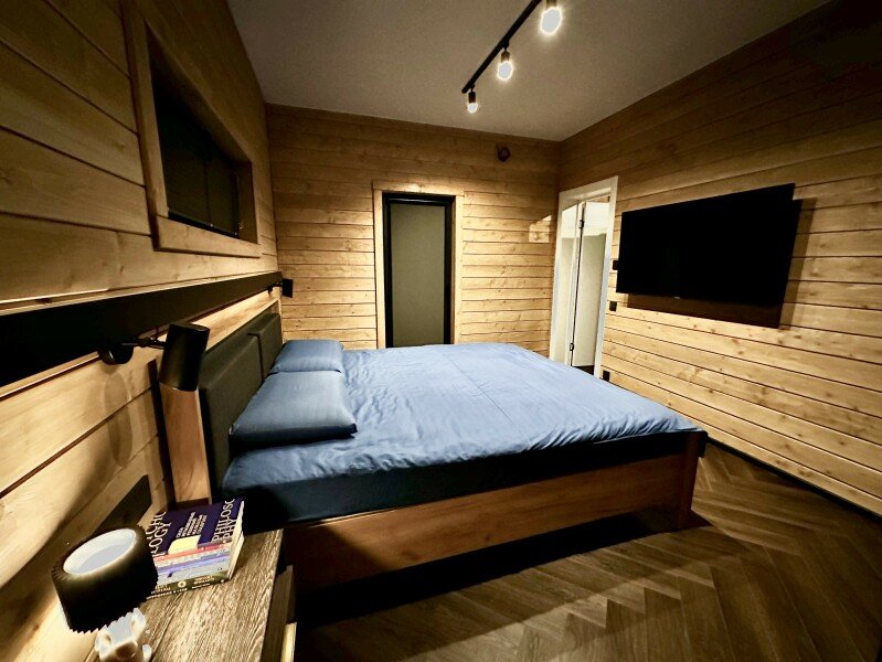 - спальная комната: Кровать 180/200 с ортопедическими подушками и матрасом, постельное белье полотенца на каждого гостя.