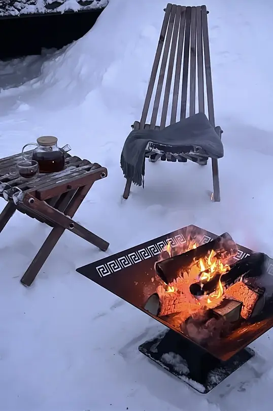 Имеется мангал и специально оборудованная зона патио с костровой чашей и шезлонгами для любителей погреться у костра.