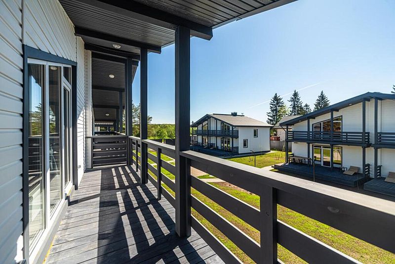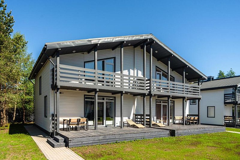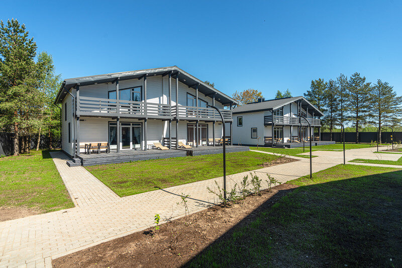 Для краткосрочного и долгосрочного проживания комфортабельные коттеджи: площадь 110 кв.м., кухня-гостиная с выходом на благоустроенную террасу, 3 спальные комнаты, 2 санузла, балкон на 2-м этаже.