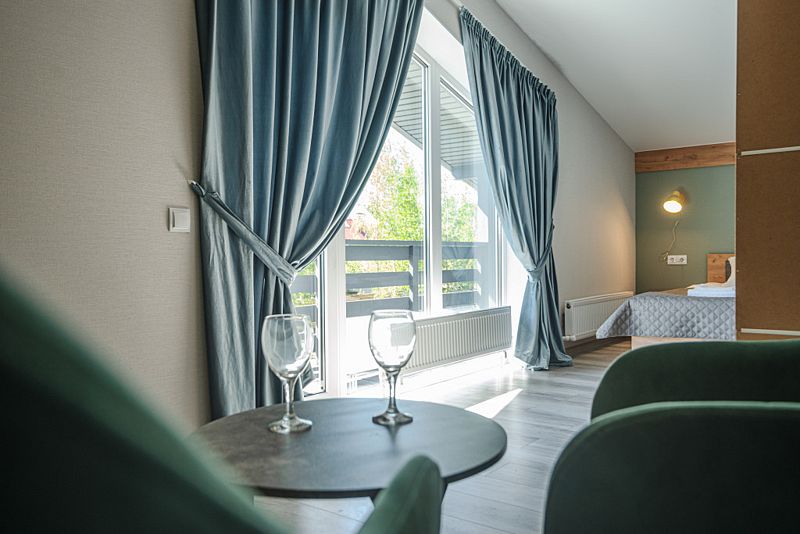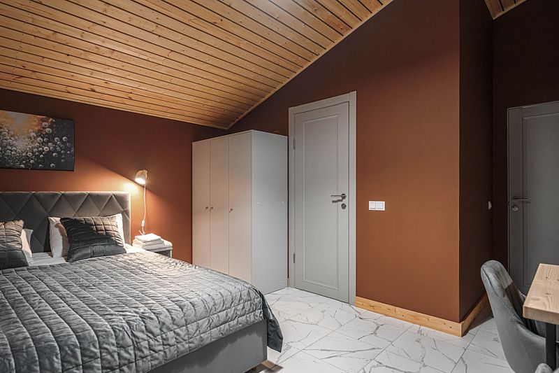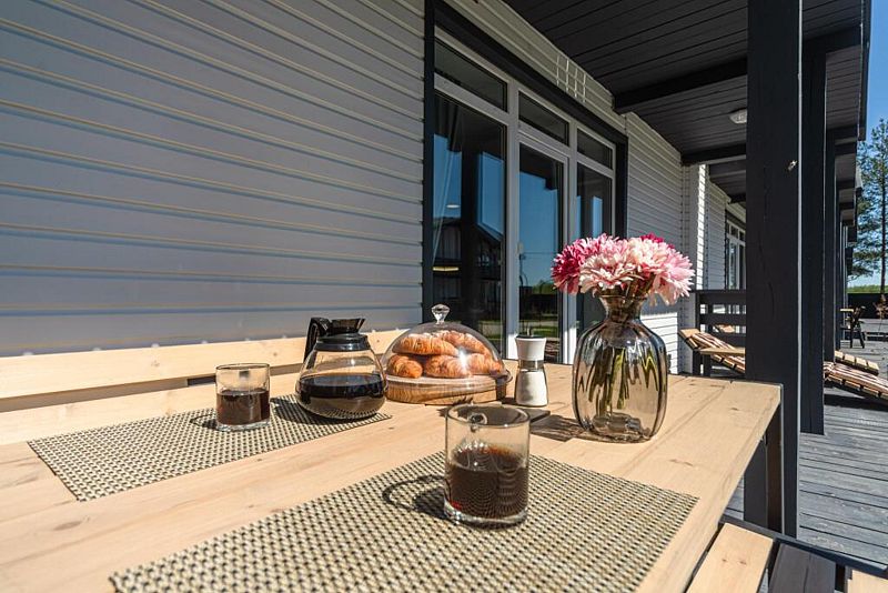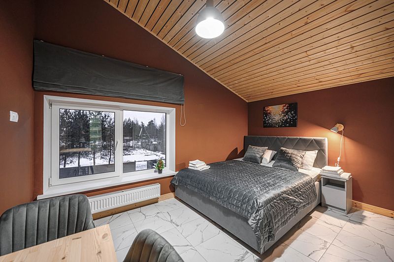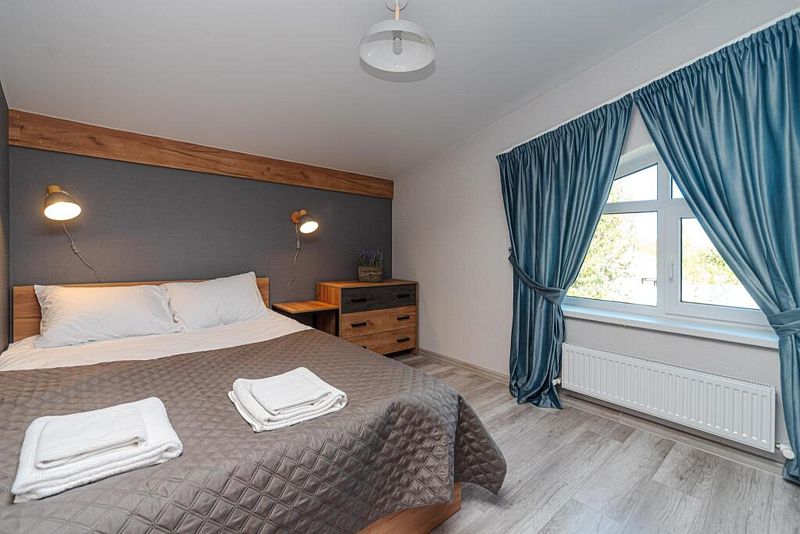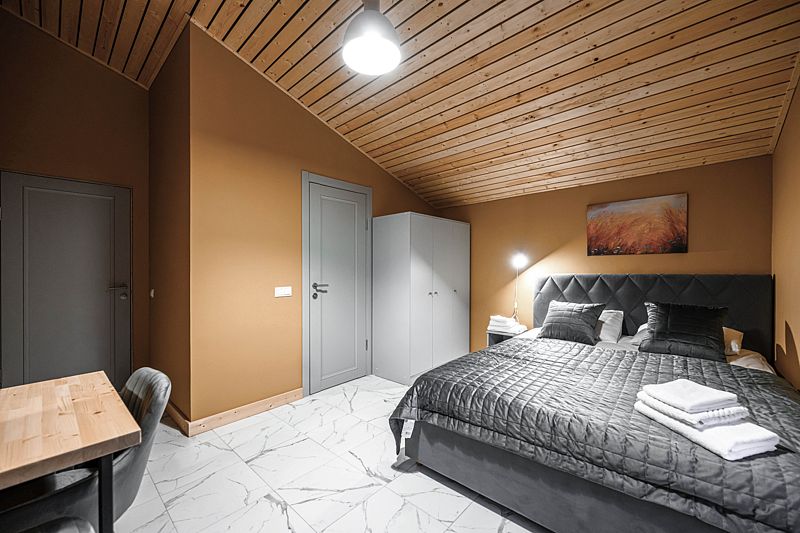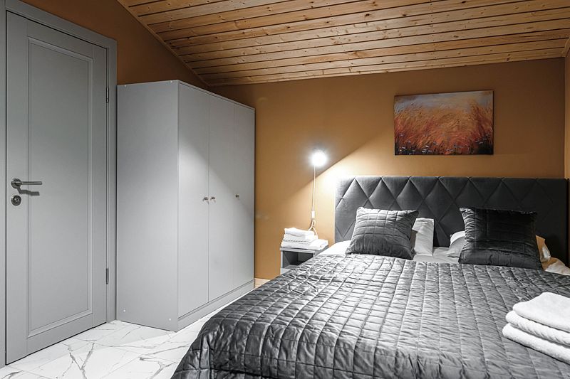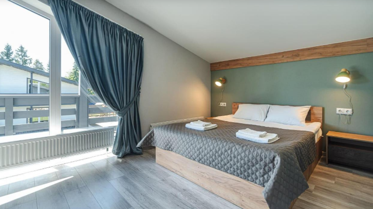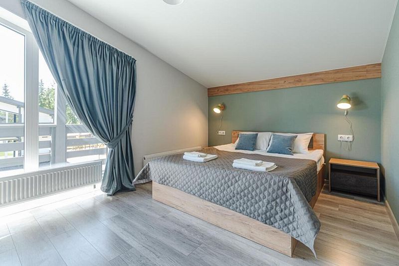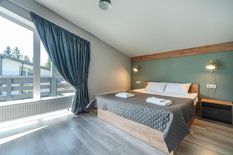 Каждый дом оснащен уютными спальнями, где установлены кровати с ортопедическими матрасами, двумя санузлами и балконом на втором этаже. В комнатах есть телевизор, также предоставляется доступ к Wi-Fi.