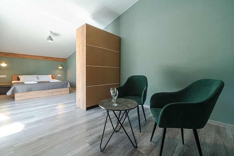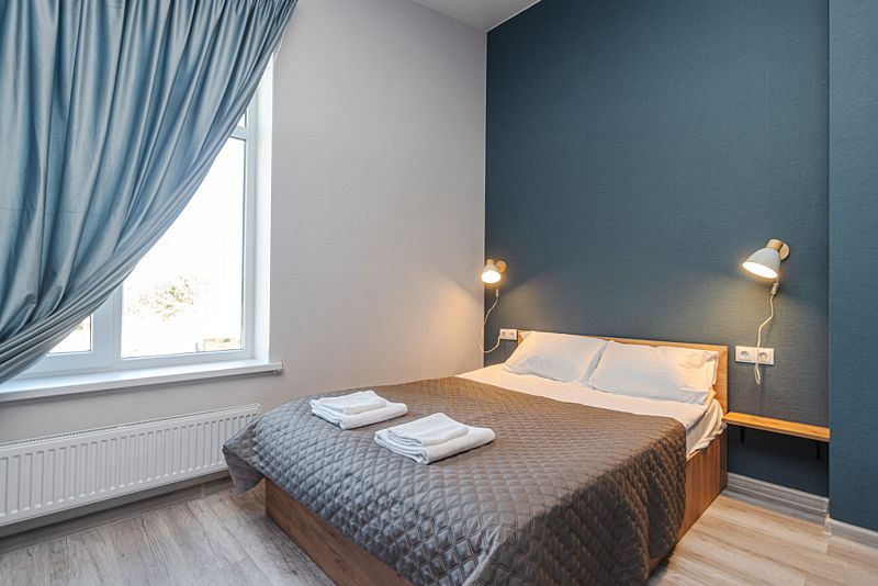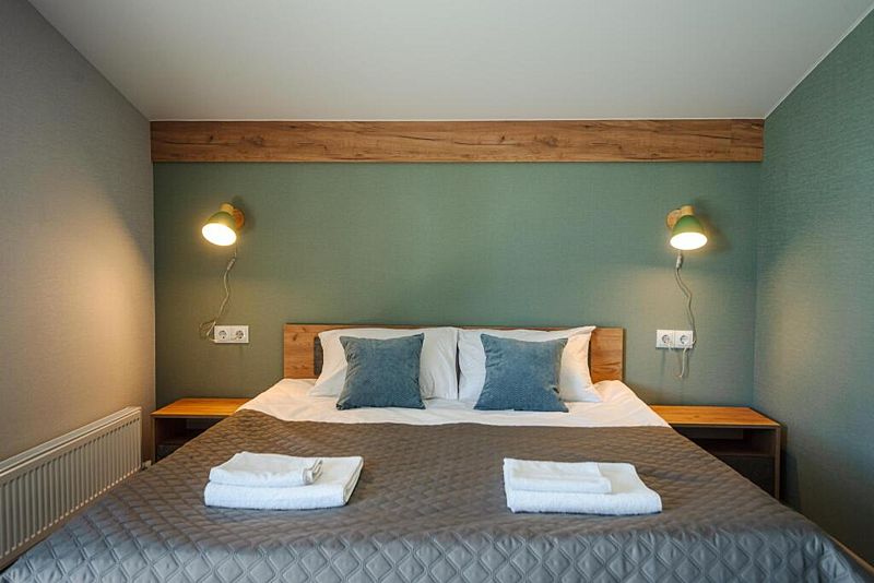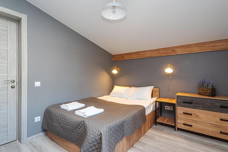 Спальные места имеют ортопедические матрасы и качественное постельное белье. Для маленьких гостей предусмотрены кроватки за дополнительную плату и стульчики.