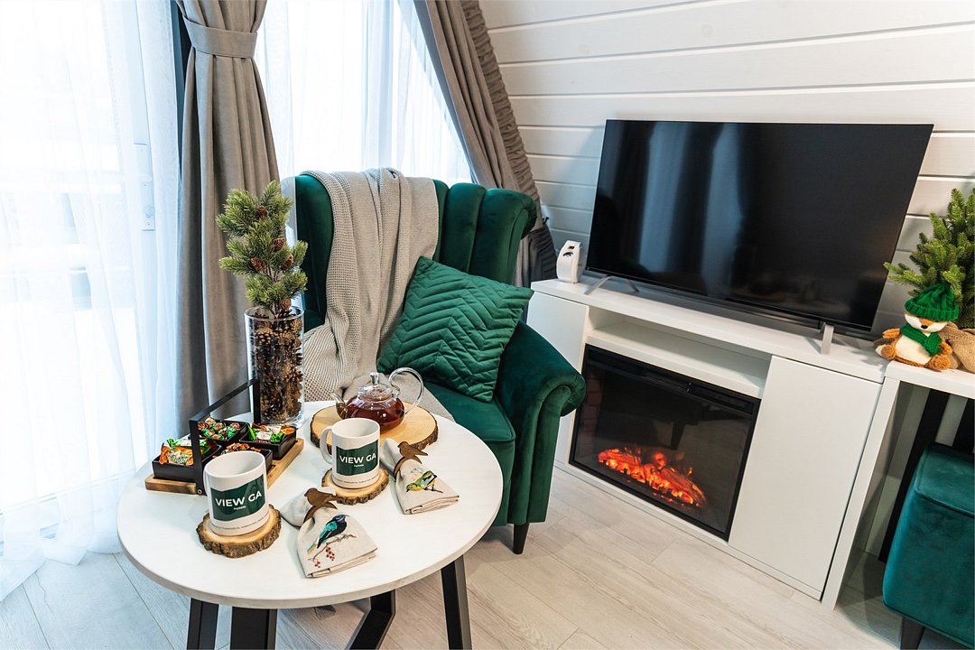 - гостиная с камином и телевизором со Smart TV;