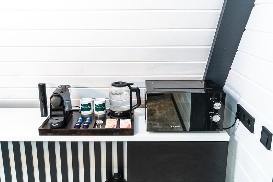 - чайная станция с кофемашиной, набор посуды для сервировки;