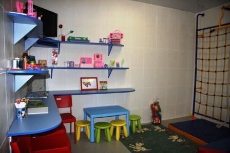 В игровой комнате ваш ребенок сможет: поиграть, порисовать, посмотреть любимые мультфильмы и детские фильмы, спеть караоке.