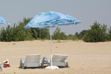 Инфраструктура: лежаки, зонтики, шезлонгиПесчаный пляж