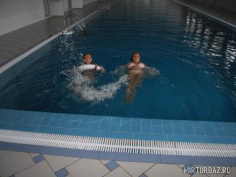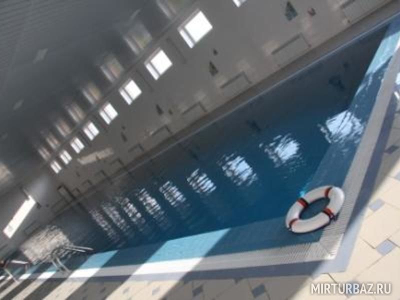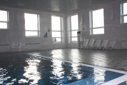 Бассейн находится в здании спортивного комплекса, что позволяет вдоволь наплаваться в любое время года. Полы в помещении бассейна в зимний период подогреваются. Для отдыхающих на базе входит в стоимость проживания.