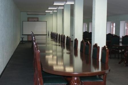 Конференц-зал рассчитан до 60 человек. Возможно проведение мероприятий: за общим столом, за отдельно стоящими друг за другом столами. Предоставляется оборудование: экран, проектор, флип-чарт. При проведении конференций, семинаров предоставляются ручки, бумага для записей.