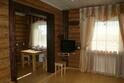 На территории турбазы расположены номера эконом класса и презентабельные люксы. Имеются коттеджи для больших компаний и уединенные небольшие срубы для семейных вечеров.