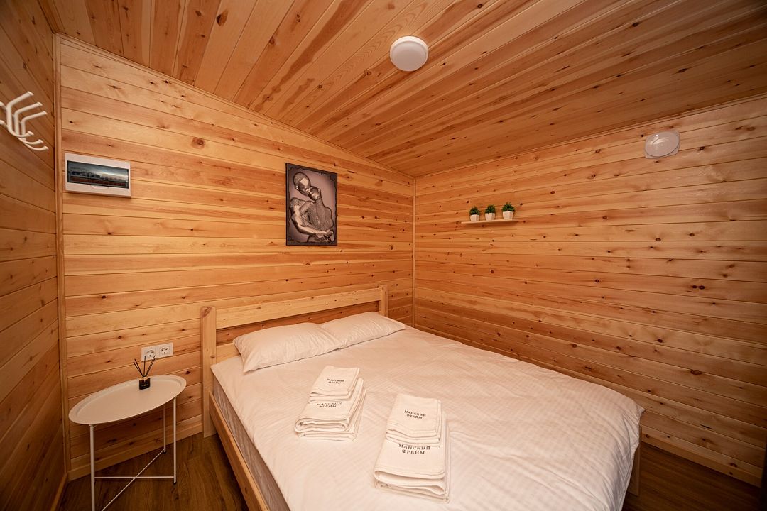 В распоряжении гостей домики для 2–4 человек с базовыми удобствами: санузел, кухня, двуспальная кровать. Идеальны для короткого отдыха в уютной атмосфере. Для удобства работает интернет Wi-Fi.