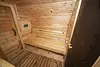 Баня-бочка на 4 персоны. Электрокаменка, деревянный интерьер и холодная вода рядом — всё по классике. Легко прогреться и сбросить усталость.