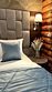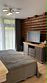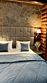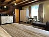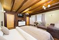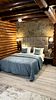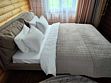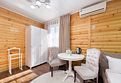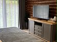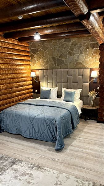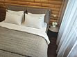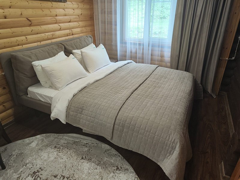 В спальной зоне - двуспальная кровать, прикроватная мебель, светильники. У коттеджа своя патио-зона с кушеткам, столом, мангалом. Гостям предоставляются постельное белье, полотенца, туалетные и косметические принадлежности, халаты, тапочки, комплиментарный карельский чай при заезде. Ориентирован на семейный отдых и романтическое удлинение.