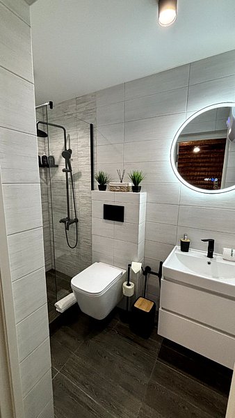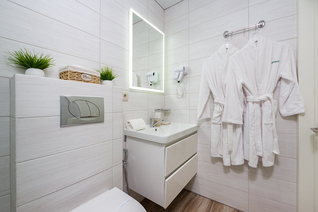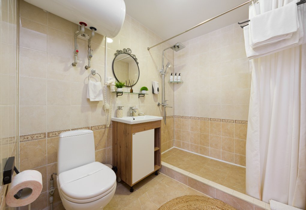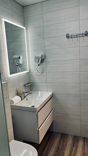 Всё необходимое для комфортного проживания: душ, туалет в номере, теплый пол, сплит система, TV, сейф, чайник, Wi-Fi, постельное белье, полотенца, туалетные и гладильные принадлежности.