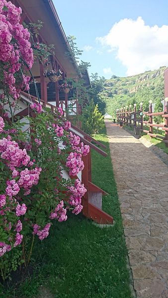 Семейный отдыхДостоинстваНеплохая гостиница. Территория небольшая, так что орущих шумных соседей не будет. Хорошие завтраки с необычной подачей. Кролики прямо на территории, ручные. Опыт от общения с лошадьми тоже запоминается. Приехала бы еще раз, наверное.