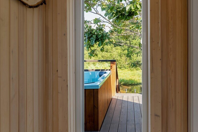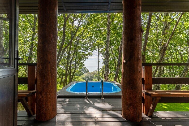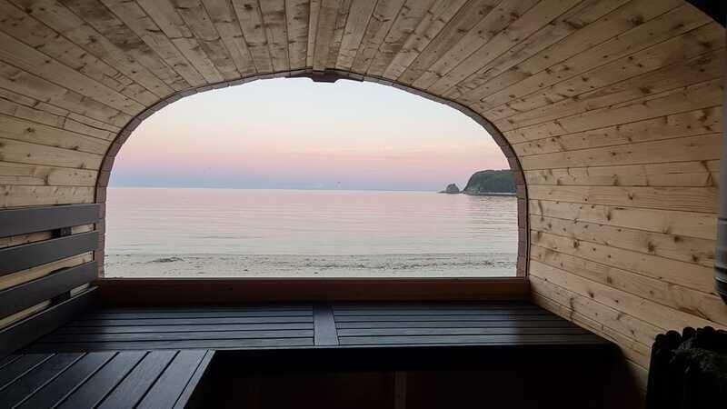 Баня расположена на пляже, всего в 10 метрах от кромки воды. Горячая купель с видом на море подарит множество сладостных минут, особенно приятно в ней любоваться закатом. После горячей парной можно окунуться в прохладном море.