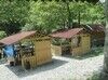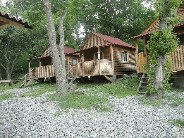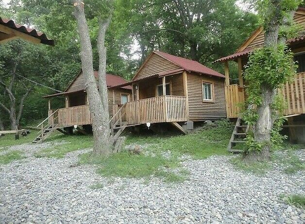 - В домиках: телевизор, чайник, кресло, тумбочка, спальные места (разные есть двуспальные кровати, есть двухъярусные кровати, есть диваны).