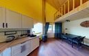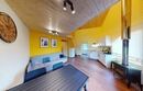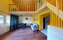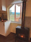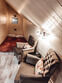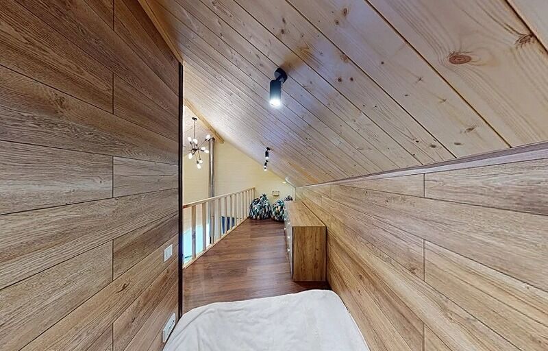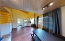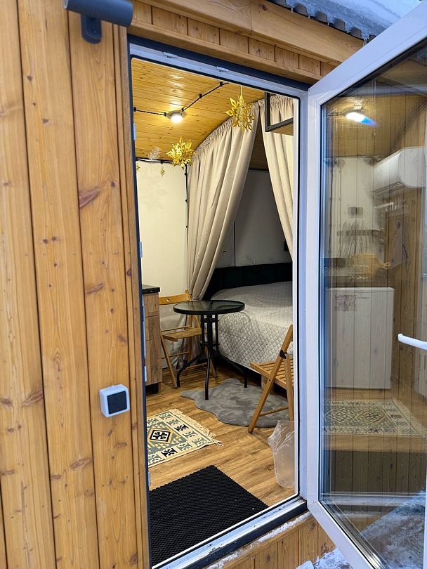 С одной спальней, антресолью и большим залом, террасой видом на горы, камином, сауной.