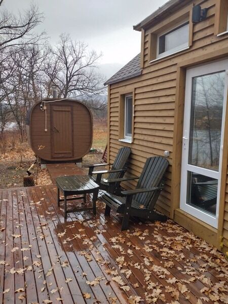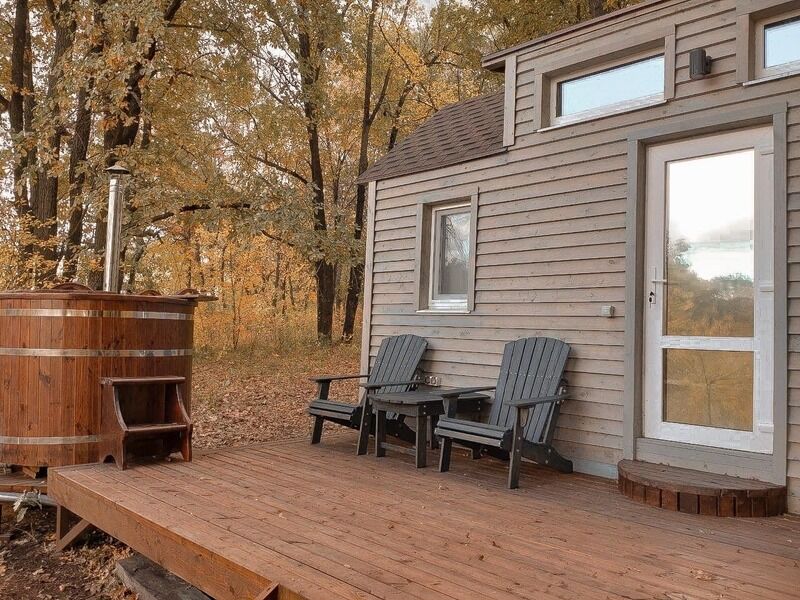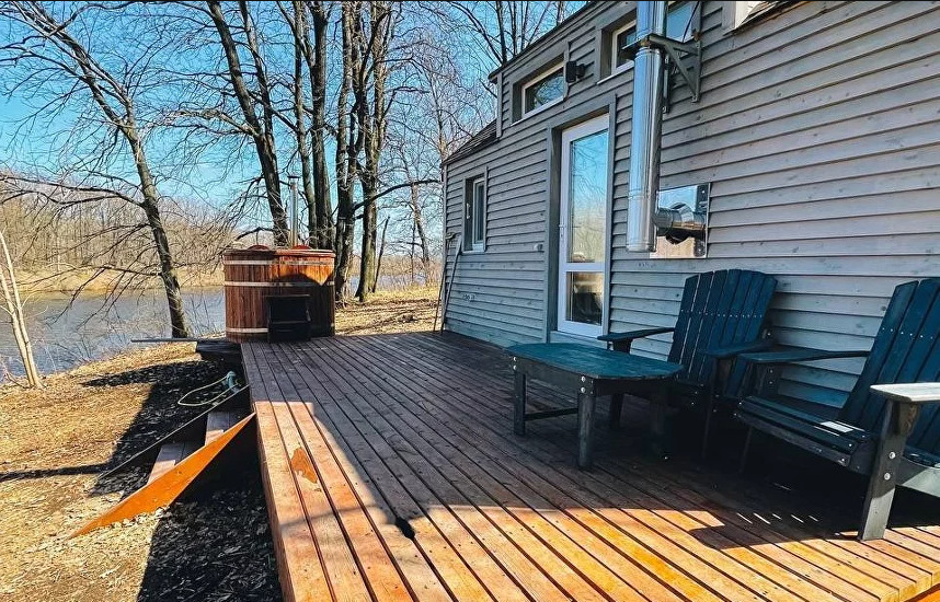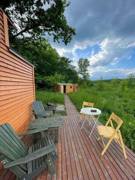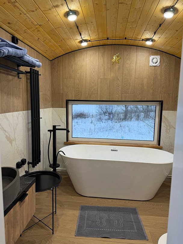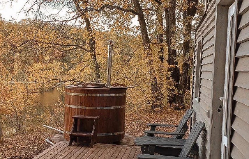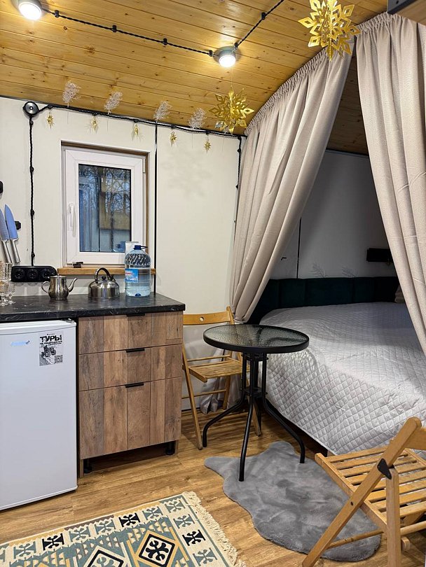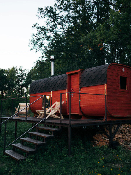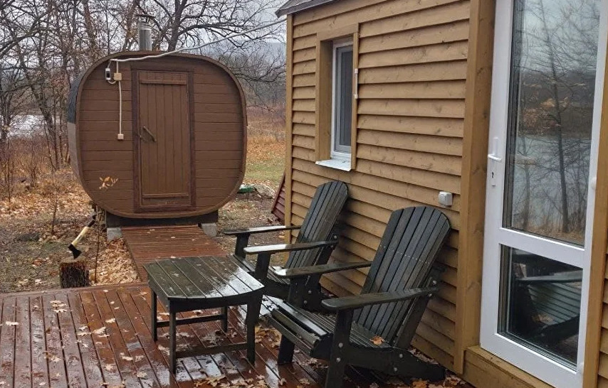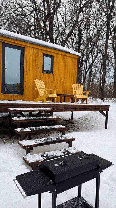Этот уютный философский уголок идеально подходит для двоих, но при желании можно смело переживать экзистенциальные кризисы и вчетвером. А когда реальность становится слишком тяжелой, всегда можно отправиться в баньку на дровах, которая расположена совсем недалеко. С ее порогов открывается потрясающий вид на Жигулевские горы — как будто природа сама говорит: "Найди свой смысл в этой красоте!"