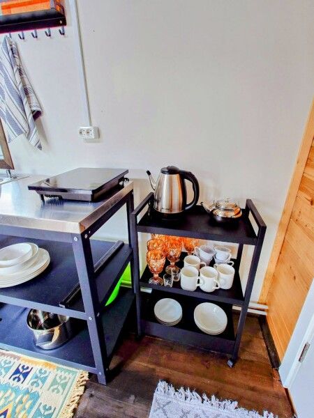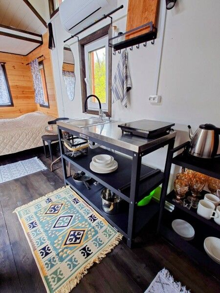 Кухня оборудована всем необходимым для приготовления блюд и сервировки стола. В домах есть питьевая вода.