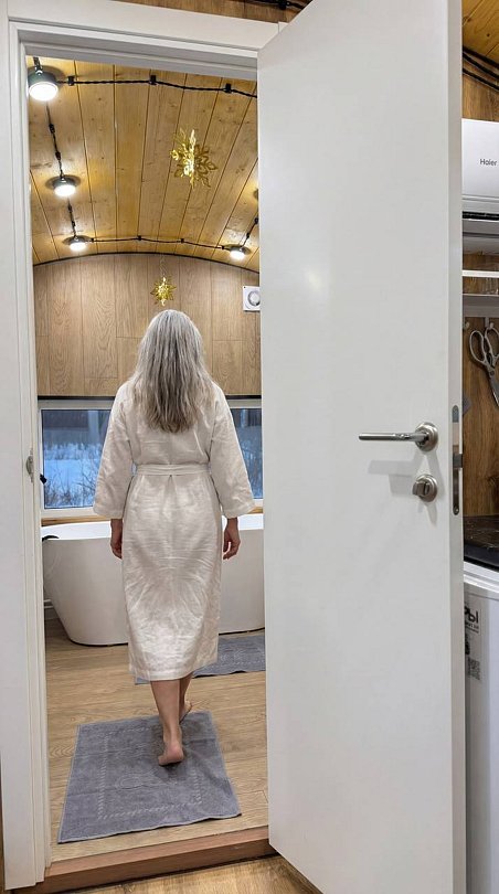 Дом оснащен столовой посудой, посудой для готовки, для каждого есть полотенце 140 на 70 см., постельное белье и питьевая вода 10 л./сутки.