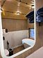 Собственная ванная комната с душем — голубая вода, шампунь, кондиционер для волос, бомбочки для ванны, крем и мыло для рук, мягкие полотенца