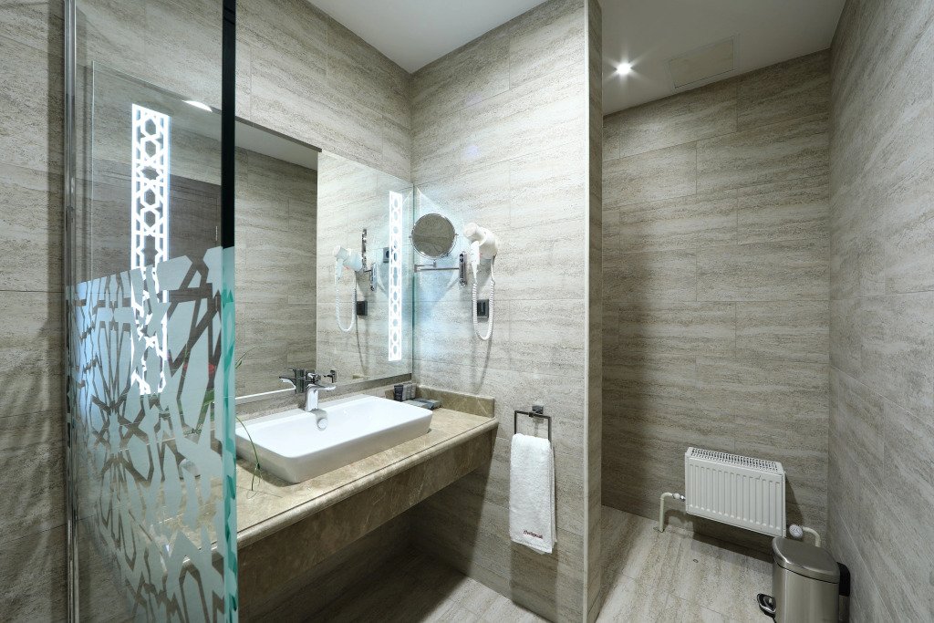 Номер обставлен и оснащён необходимым, чтобы отдохнуть после долгого и насыщенного дня. Имеются душ, телевизор, мини-бар, халат и тапочки. Перечисленные услуги есть не во всех номерах.