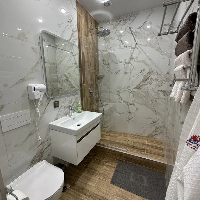 В номере вы найдёте халат. Оснащение зависит от выбранной категории номера.