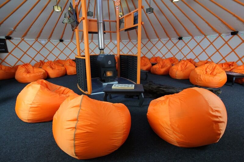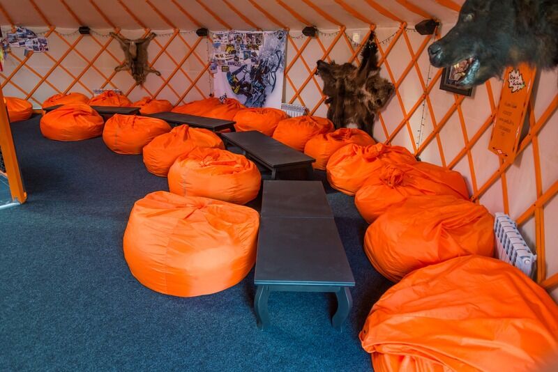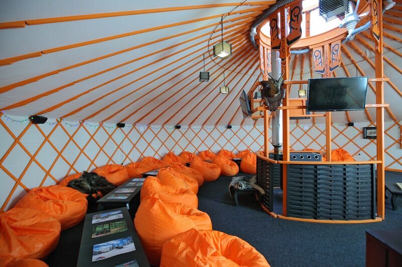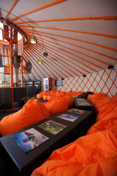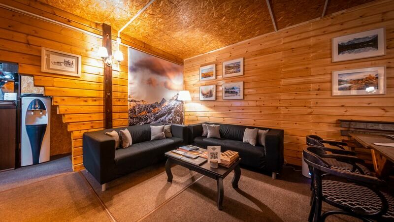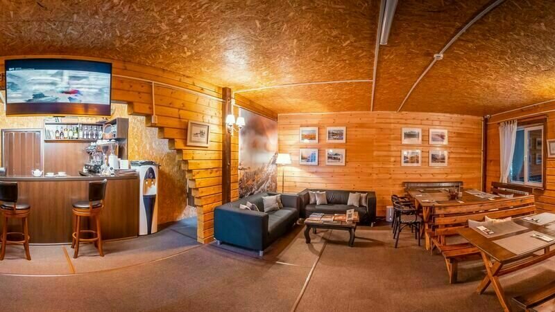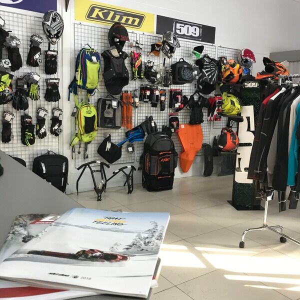В шоуруме, расположенном на территории гостиничного комплекса "Муравейник "можно найти все, что может понадобиться снегоходчикам в горах: