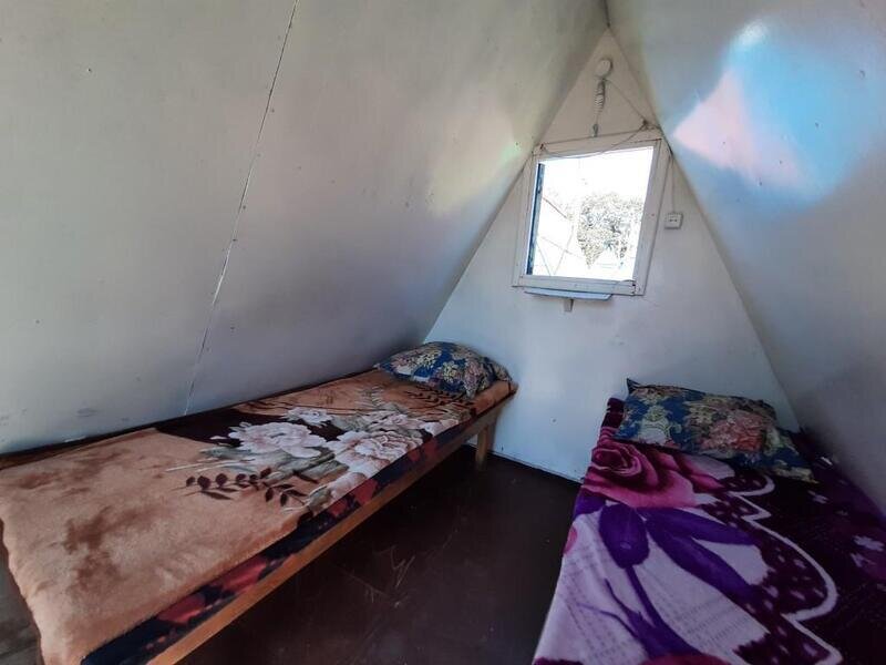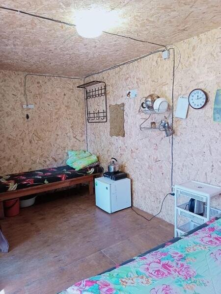 НедостаткиДомик ужасный.Вместо кроватей сколочены деревянные нары. Столик (детский) и сломан. Два стула и третий сломан. ( Домик на троих.) Сеток на окнах нет . В домике мухи. Орёт музыка до двух ночи. Уснуть невозможно. Можно перечислять бесконечно.... Ни кому не порекомендую эту базу.