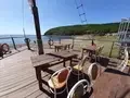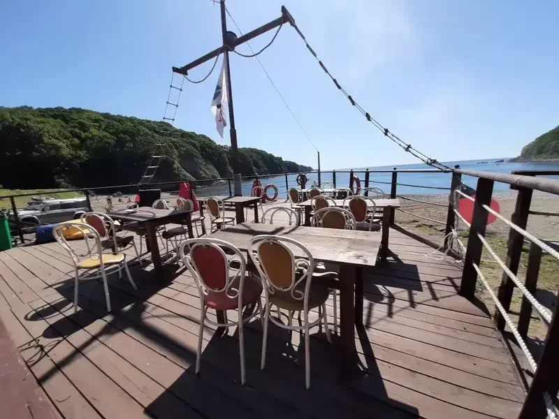 В здание проката расположен магазин и открытое кафе, где вы можете приобрести свежие морепродукты.