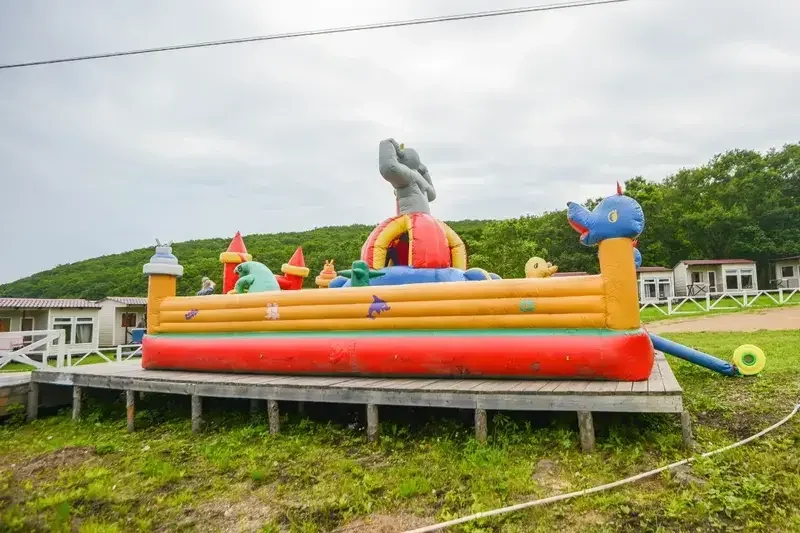 На территории базы отдыха возле детской площадки расположен большой детский батут.
