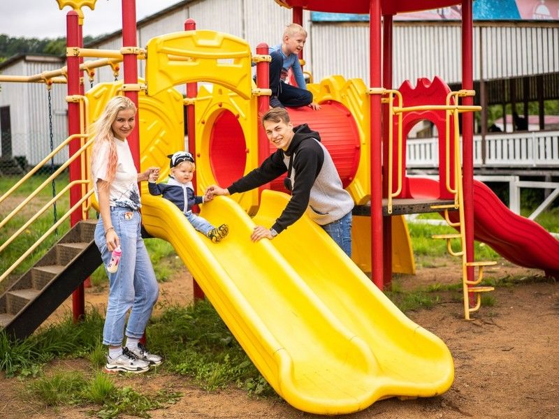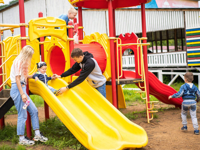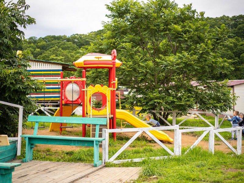 На территории базы расположена детская площадка с лабиринтом и горками.