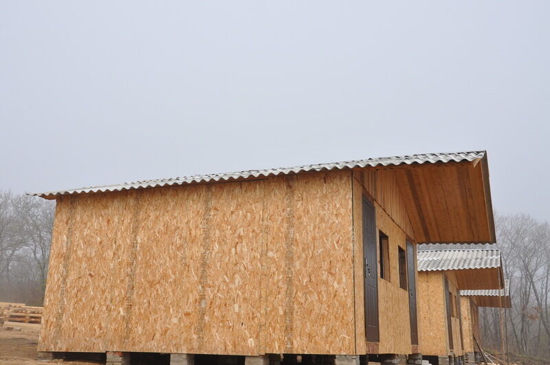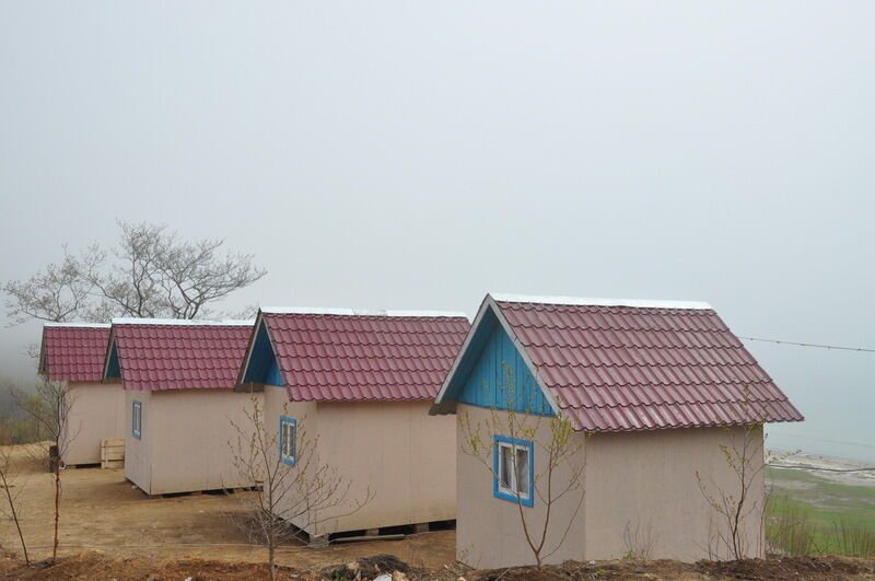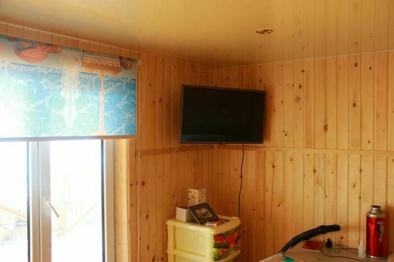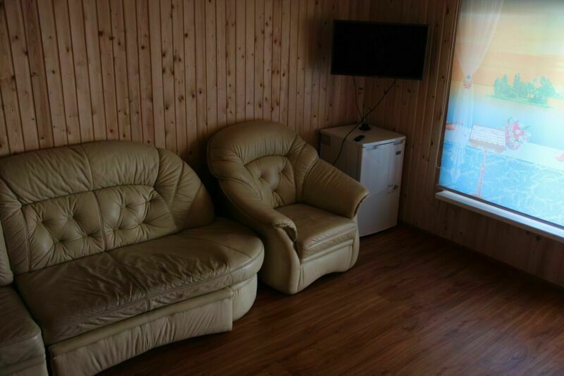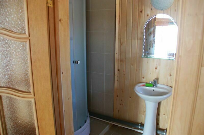 В домике есть двуспальная кровать, односпальная кровать, телевизор, чайник, постельное белье, стол, cтулья. Мангал для каждого дома бесплатно. Душ и санузел на территории базы.