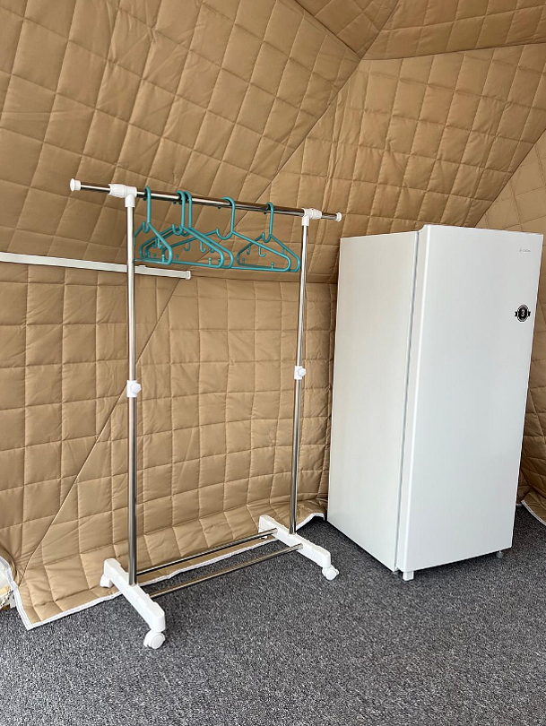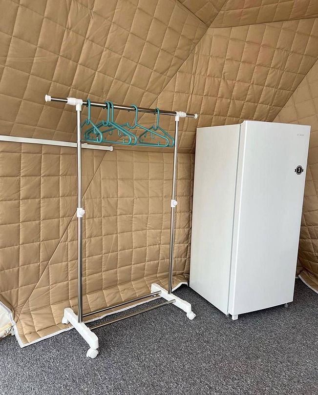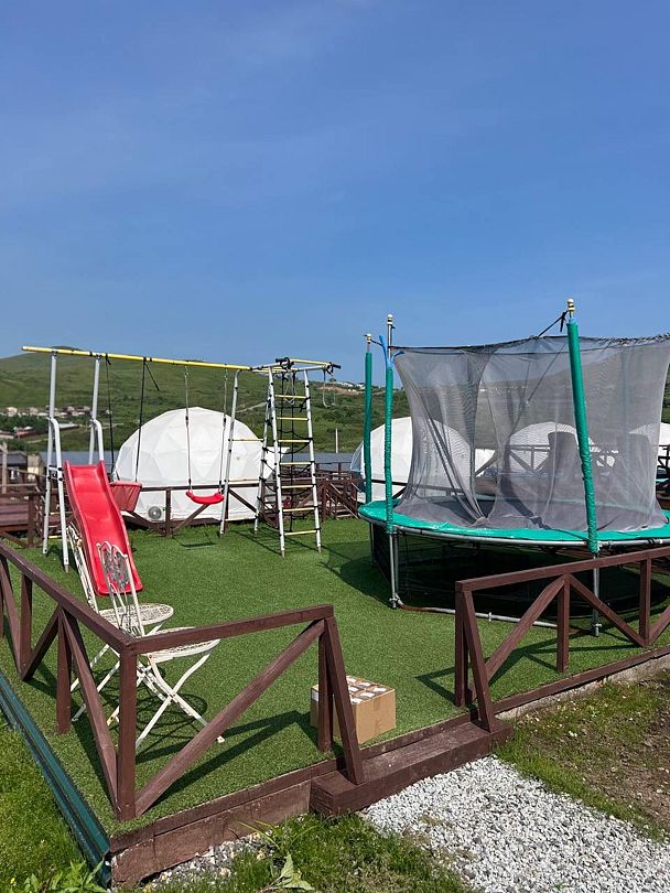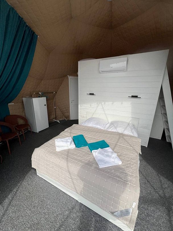 В глэмпинге может разместиться трое взрослых, либо 2 взрослых/2 детей.