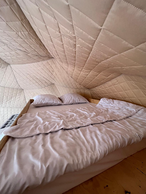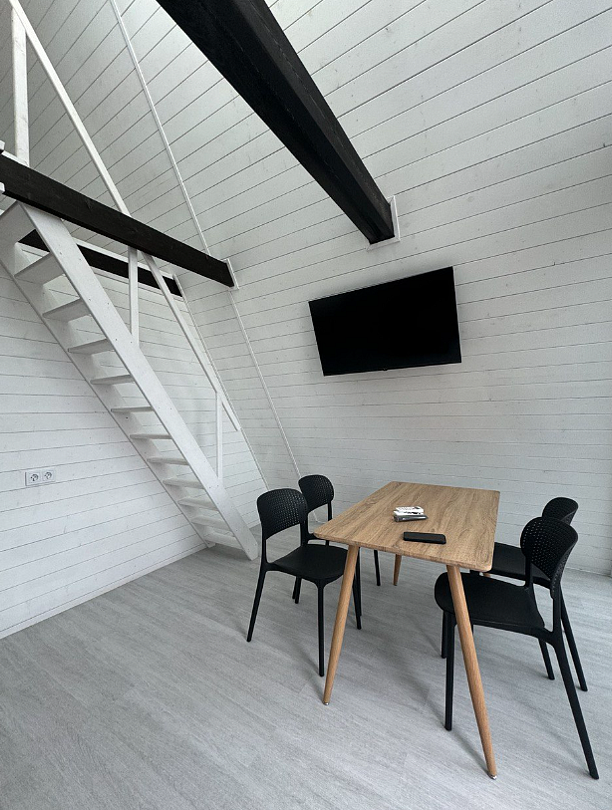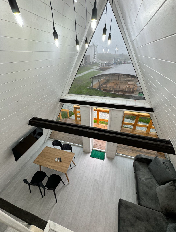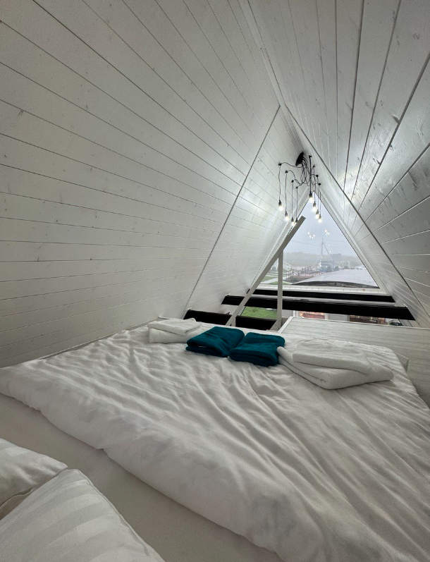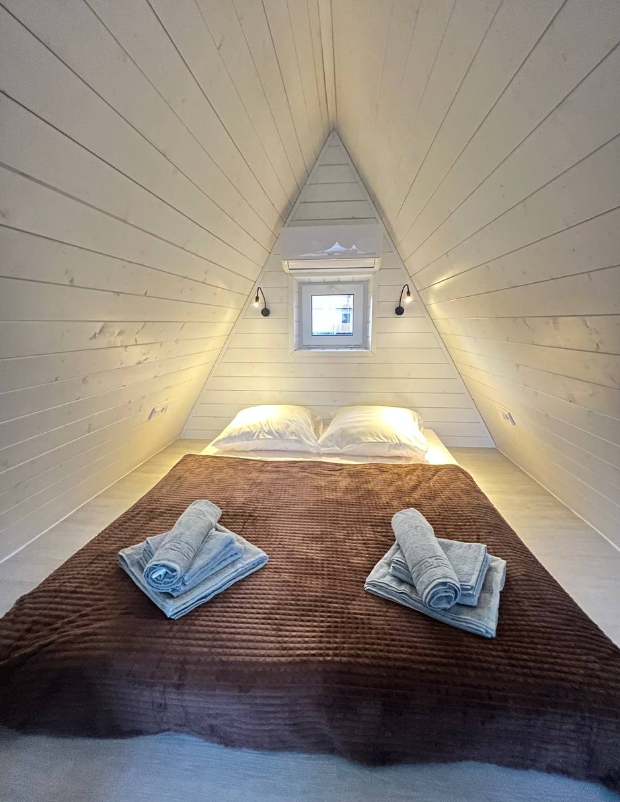 - большая двуспальная кровать с панорамным видом на втором этаже;