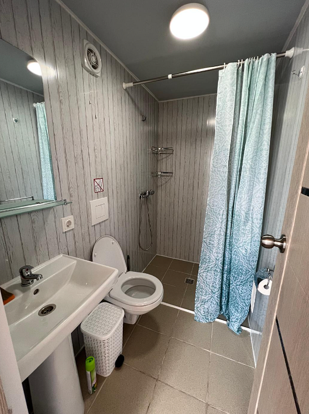 - санузел с душем и теплыми полами;